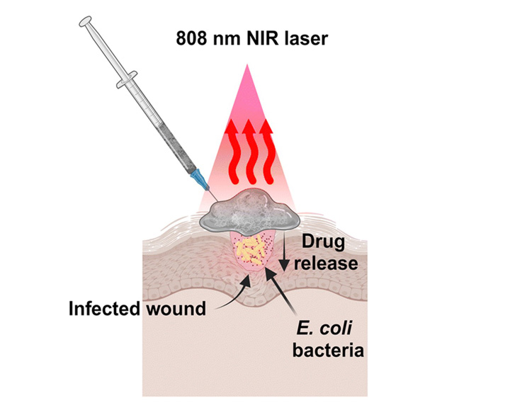 We design photo-responsive biomaterials that can interact with light to enable controlled biological and therapeutic functions. Our materials are engineered to respond to specific wavelengths, allowing spatial and temporal modulation of processes such as drug release, tissue regeneration, and antibacterial activity. By combining thermoresponsive polymers and photo-activated nanoparticles, we fabricate systems that offer on-demand activation and reversible behavior. These smart materials offer new opportunities for non-invasive, precise biomedical applications.